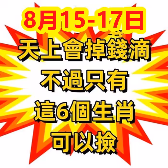 8月15~17日天上會掉錢滴,不過只有這6個生肖可以撿