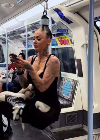 女子捷運上「盤腿吊空中」!輕鬆晃像在盪鞦韆 乘客全看傻 知情人急喊:快跑!她在練功