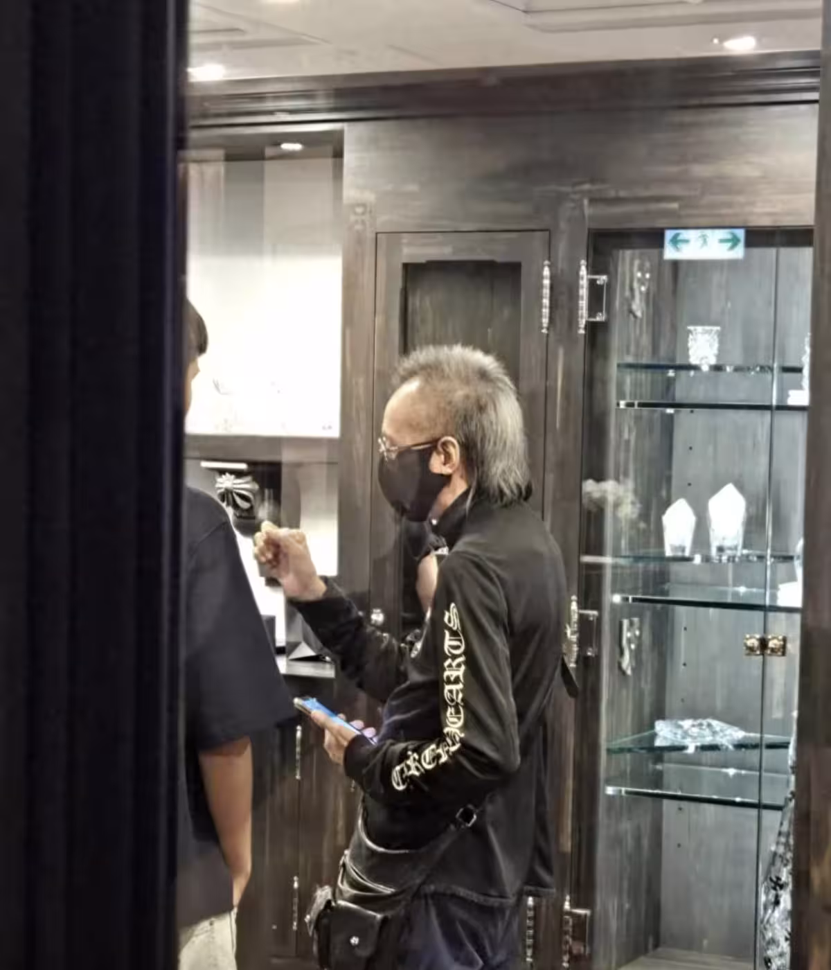難得有路人在香港偶遇陳國熹,還邀請他合照,而他也表現大方,這才有了近照被曝光。路人是在香港的Chrome Hearts分店偶遇的陳國熹,他當天的心情應該還不錯,還在店裡招呼賓客,對方邀約合照,他也爽快答應了,還表現得極為親民。從合照來看,陳國熹戴上了圓形的金絲眼鏡,氣質還是一如既往地儒雅、斯文,整個人顯得文質彬彬,帶著微笑面對鏡頭。而陳國熹的髮型還挺特別的,前短後長,頭部前面的頭髮幾乎沒了,已經禿了,而後半部分頭髮已經花白了,但長度已經留到了肩膀的位置,這看起有種說不出的怪異感。