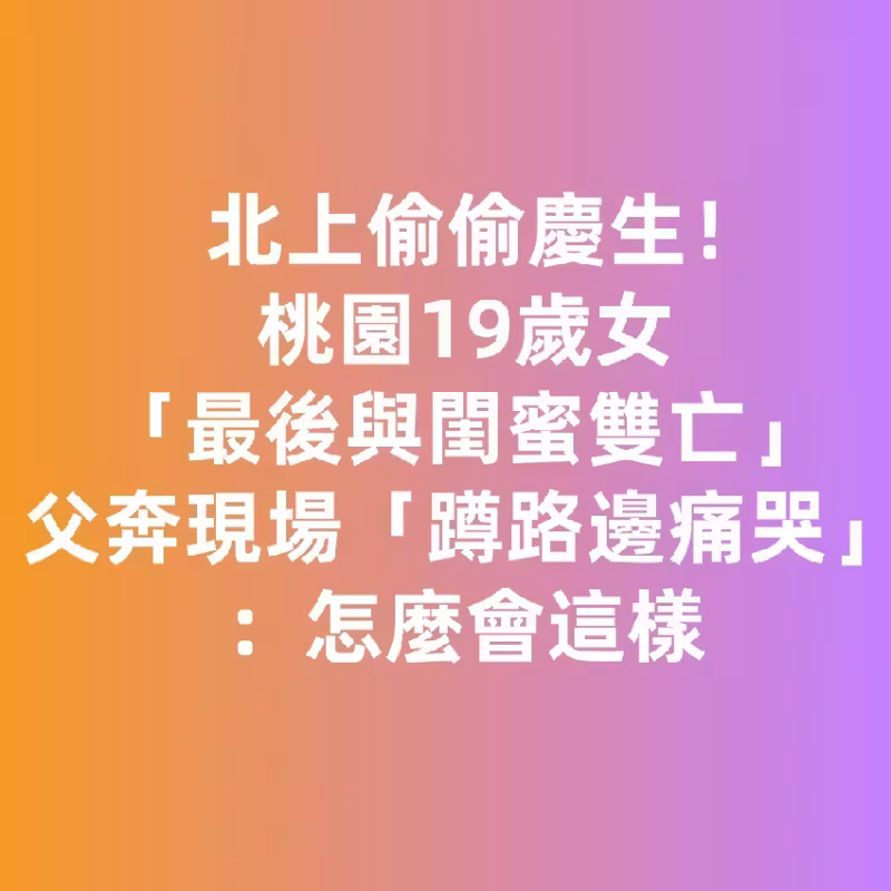 北上偷偷慶生!桃園19歲女「最後與閨蜜雙亡 ! 父奔現場「蹲路邊痛哭」:怎麼會這樣