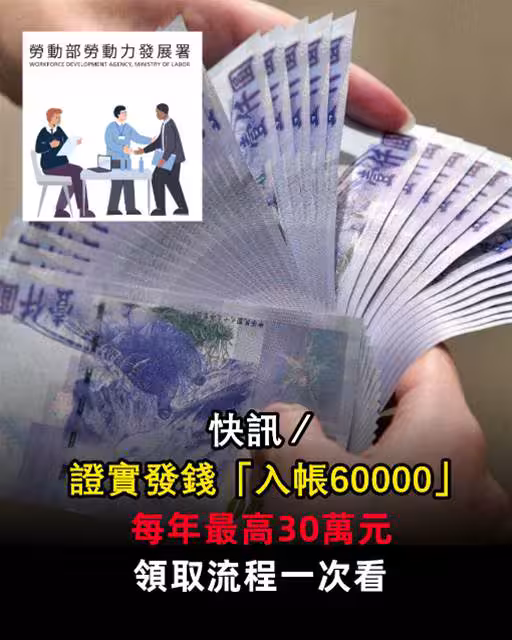 快訊/證實發錢「入帳60000」!每年最高30萬元,領取流程一次看