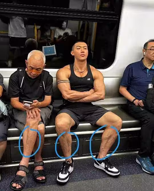 健身男捷運上超吸睛,雙手交叉設置胸前,取了象徵,她拍下分享定睛一看嘆了口氣:還沒有旁邊老大爺健康