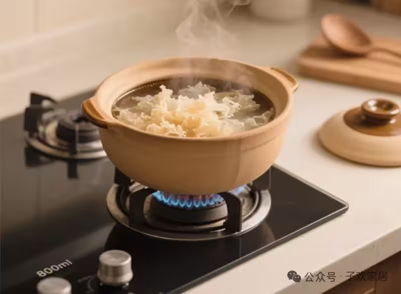 2.砂鍋里加水800ml,放銀耳大火煮開,轉小火燉40分鐘至膠質濃稠。