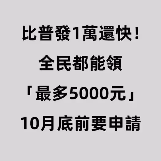 比普發1萬還快!全民都能領「最多5000元」10月底前要申請!