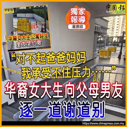 (吉隆坡20日訊/獨家報導)「對不起爸爸媽媽,我承受不住壓力……」