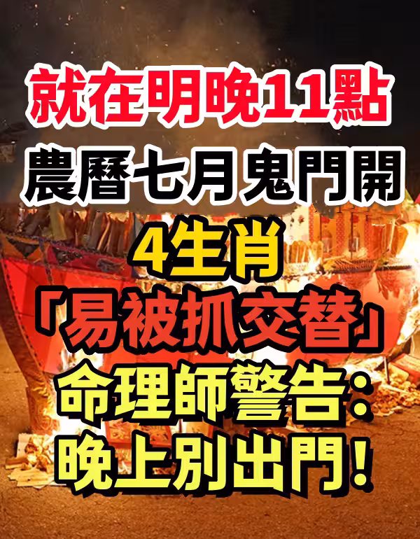 就在明晚11點,農曆七月鬼門開「4生肖易被抓交替」命理師警告:晚上別出門!