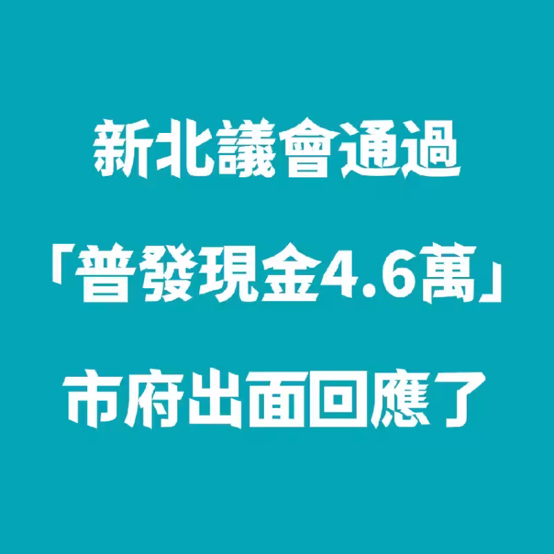 新北議會通過「普發現金4.6萬」!市府出面回應了!