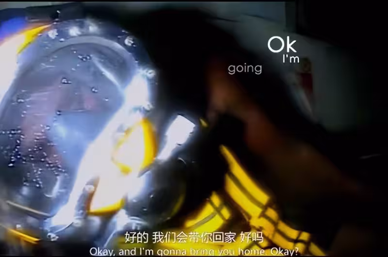 潛水員視角 接著將他送入潛水鐘與海底同壓區,緩緩升出海面。