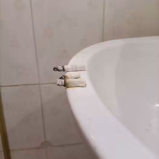 近日,一名瓦斯工人在某戶人家維修瓦斯時,借用衛生間時無意間發現洗手台上整齊擺放著三根已經燃燒過的香煙。