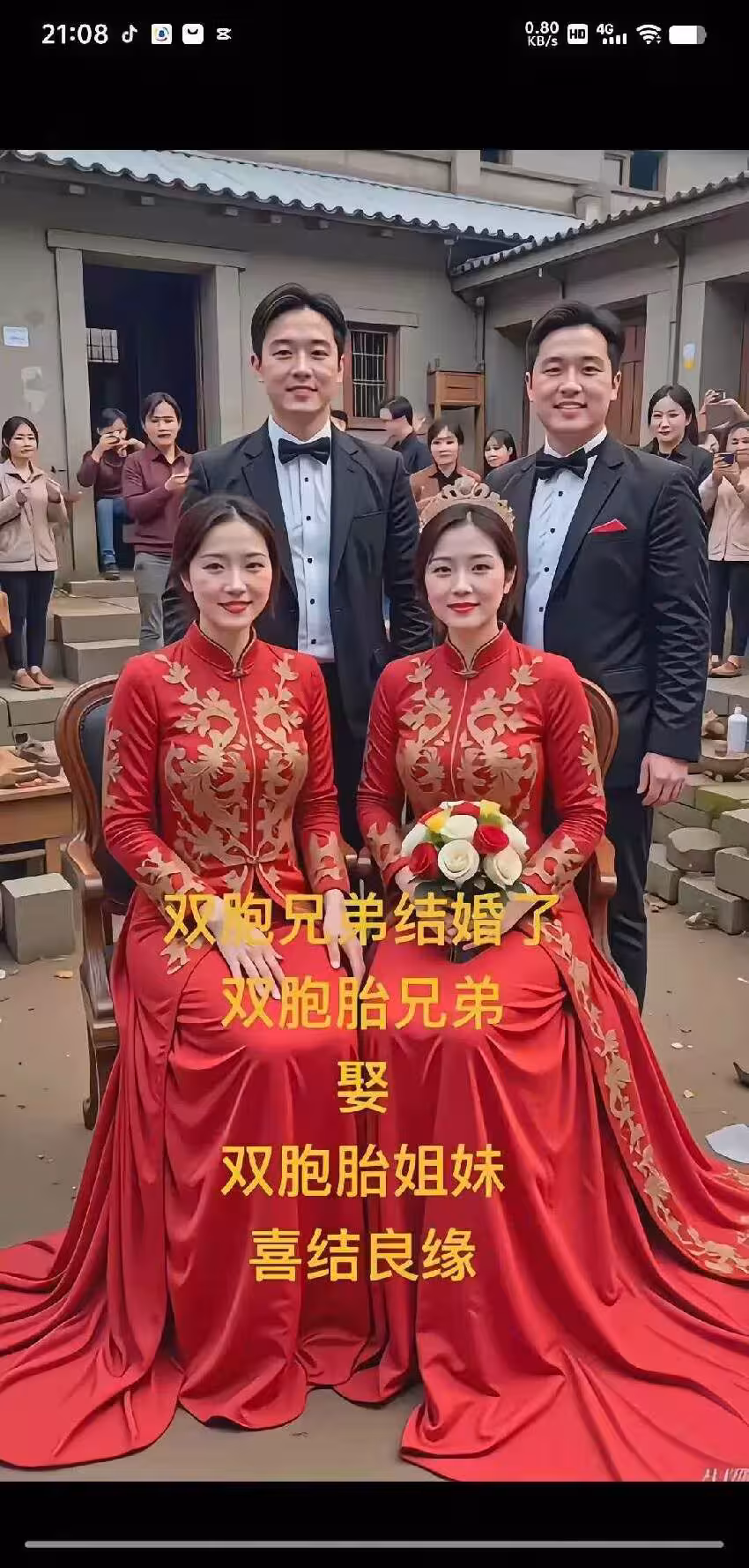 雙胞胎兄弟迎娶雙胞胎姐妹花,親戚發問「怎麼分得清」,婆婆:看這2處特徵,絕對錯不了!