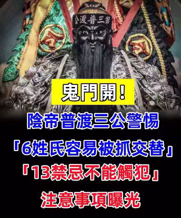 鬼門開!陰帝普渡三公警惕「6姓氏容易被抓交替」「13禁忌不能觸犯」注意事項曝光