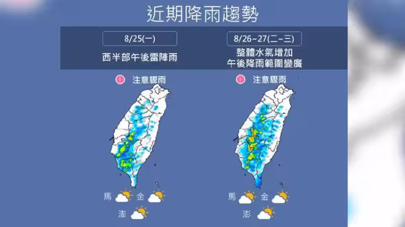 氣象專家賈新興表示,周三至周四南海一帶有熱帶系統發展,但周三至周四有機會成為熱帶性低氣壓,甚至是「藍湖颱風」,但目前機率較低。