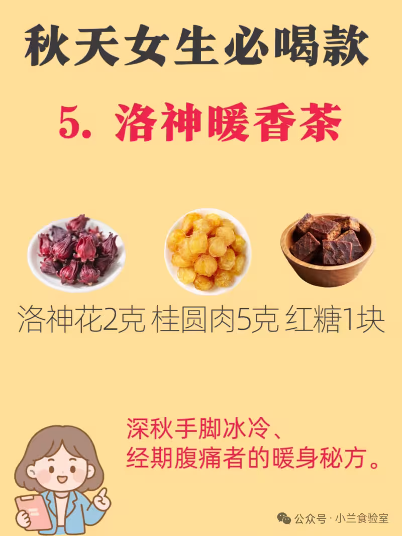 洛神花富含維生素C抗氧化,桂圓補血養心,紅糖溫宮驅寒。深秋手腳冰冷、經期腹痛者的暖身秘方。