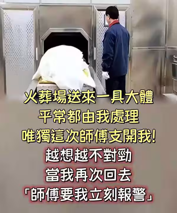 火葬場送來一具大體,平常都由我處理,唯獨這次師傅支開我!!越想越不對勁,當我再次回去「師傅要我立刻報警」!