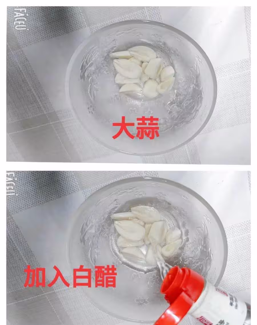 準備若干大蒜,將大蒜皮剝乾淨,然後放在乾淨無水的容器中。隨後倒入適量白醋,讓白醋浸泡一段時間,約30分鐘左右。浸泡的目的是為了讓大蒜可以更好吸收到白醋。