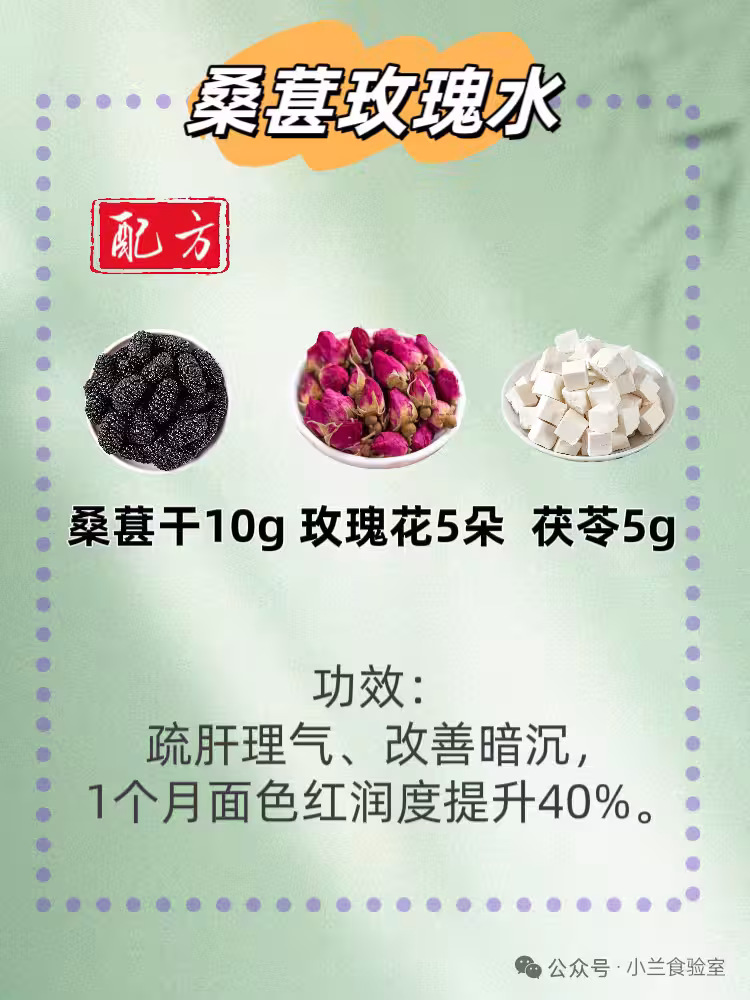 桑葚干10g + 玫瑰花5朵 + 茯苓5g
