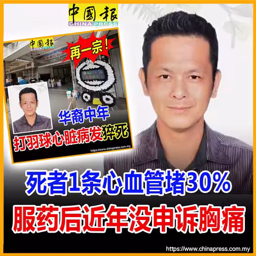 (芙蓉29日訊)又一宗打羽球猝死事故!