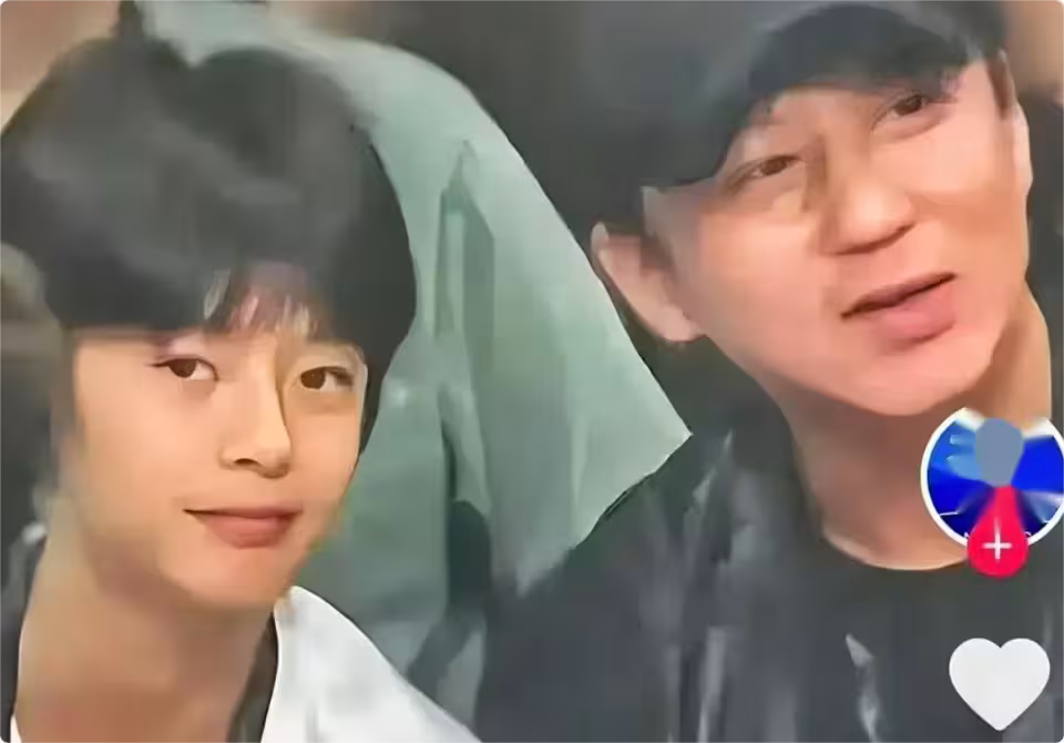 照片里,鄧超倒是很隨性,黑色休閒裝搭配鴨舌帽,沒有妝發,透著樸實,坐在觀眾席上幾次和一旁的等等交流,父子倆的眼裡流露著同樣對體育運動的熱愛。