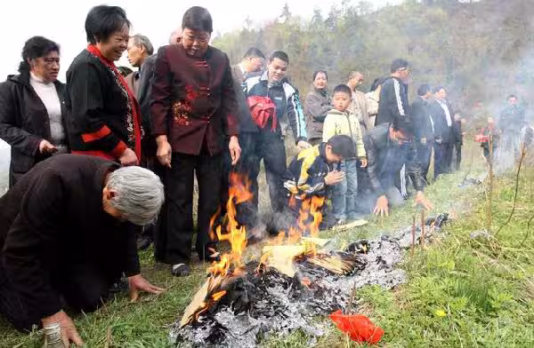 不知不覺又到了清明祭祖的日子,傻小子陪同家人,扛著鋤頭,提著一籃子香火草紙上墳去了,傻小子祭拜的是自己的爺爺奶奶。