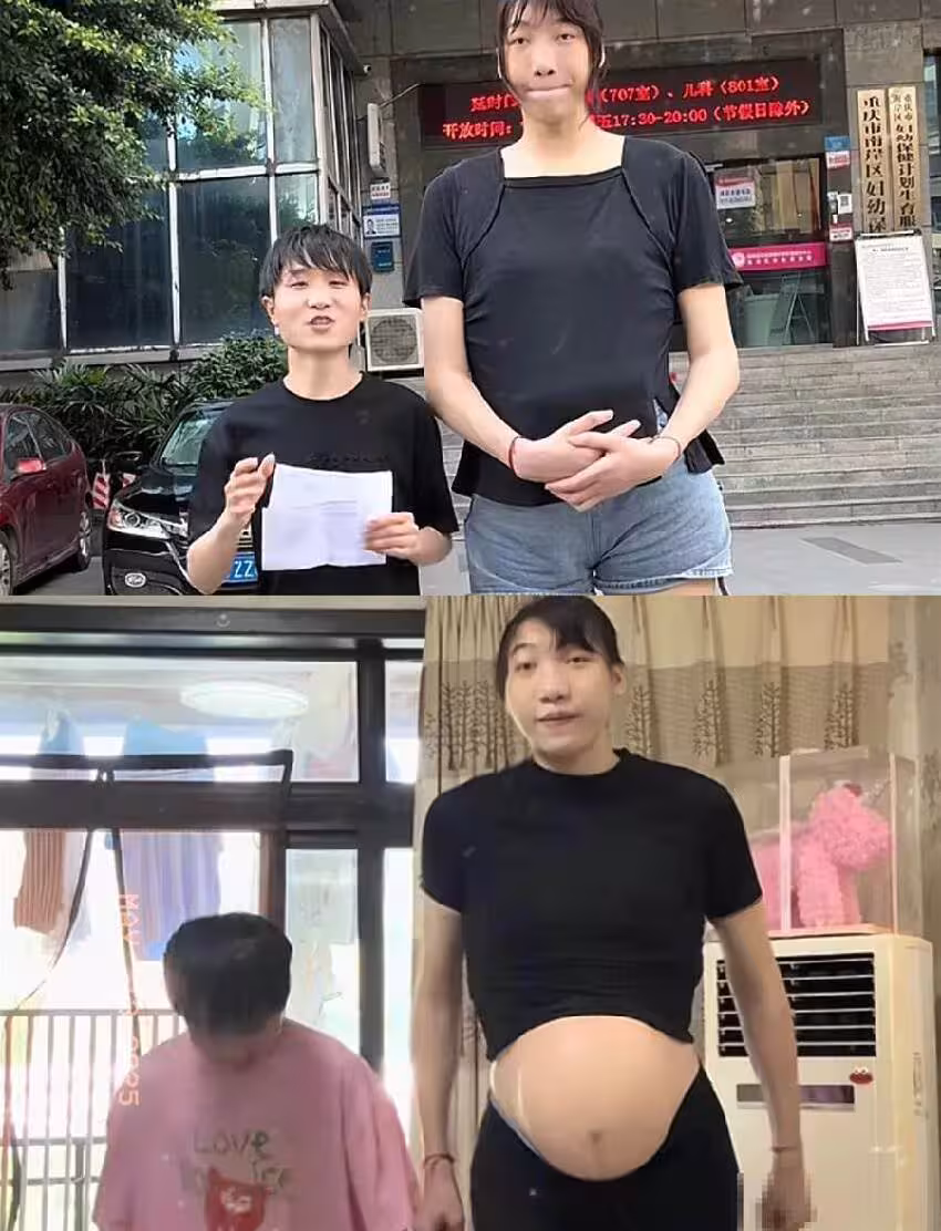從小伙發布的視訊里也可以看出,5月9日,兩個人去產檢的視訊里女友肚子還沒有這麼大,但在近期最新的一條視訊里,肚子卻變成了這樣,很難不讓人懷疑是不是在利用兩人的身高差來譁眾取寵博流量。