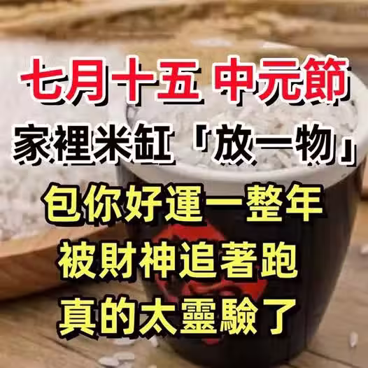 七月十五中元節,家裡米缸「放一物」包你好運旺一整年! 被財神追著跑,真的太靈驗了!!