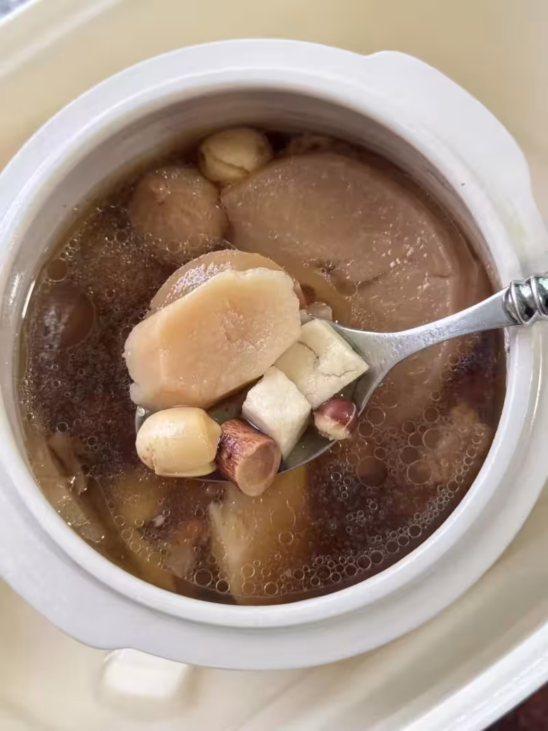 3. 用燉盅燉2小時,或者用湯鍋煲1小時,出鍋前依據個人喜好加鹽調味就行。
