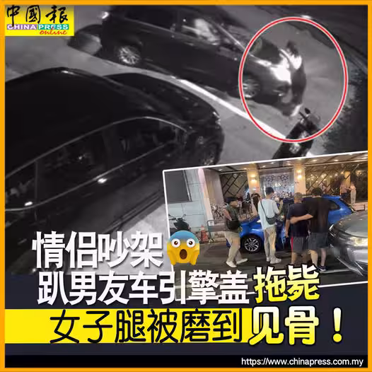 情侶吵架 趴男友車引擎蓋拖斃 女子腿被磨到 見骨!
