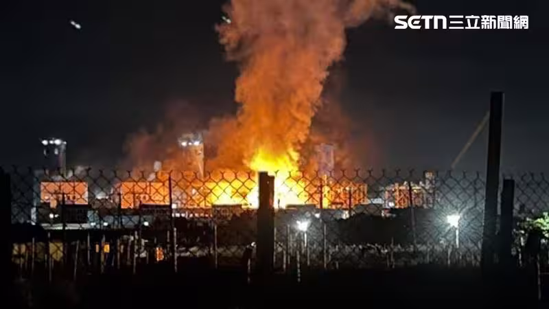 高雄興達電廠大火,烈焰沖天。(圖/翻攝畫面)