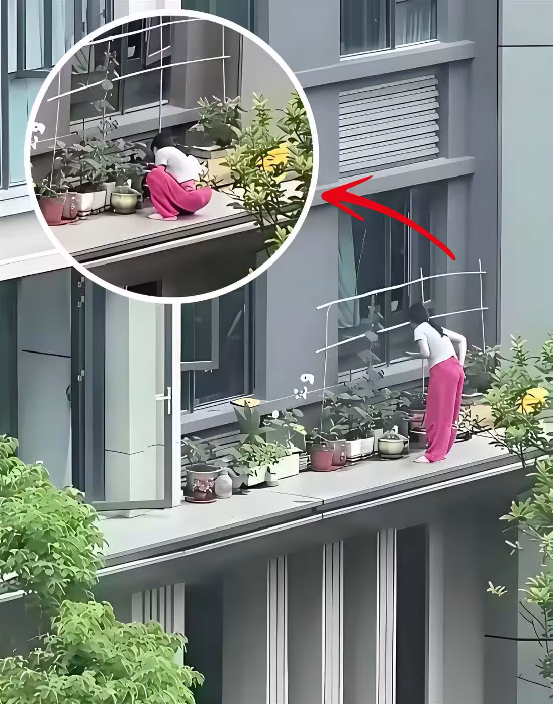 嚇爛!女子在10樓懸空陽台種菜,下一秒她的「1個動作」,讓圍觀群眾集體尖叫!