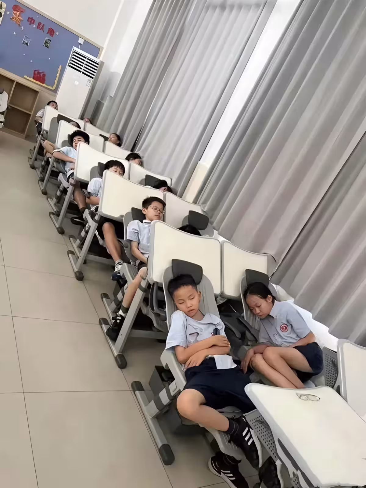 推文網友曬出一張教室照片:​​「現在的小孩子真的是太幸福了,中午午睡都有這種椅子睡」​​,並特別說明​​「椅子靠背可以放平」​​。對比自己童年​​「趴桌子上睡覺」​​的艱辛,他拋出核心問題:​​「大家說值得推廣嗎?」​​