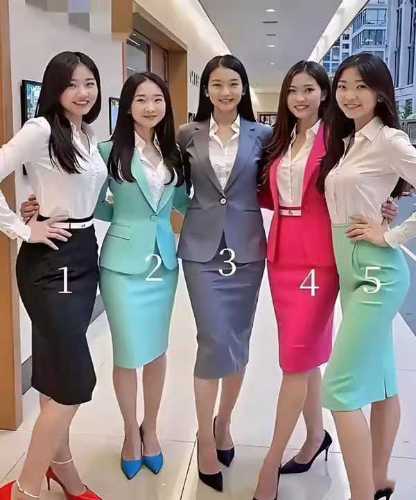 照片中,五位女士穿著色彩鮮艷的職業裝,站成一排,面帶微笑,看似平常的合影卻隱藏著一個秘密:其中一位是「男扮女裝」。