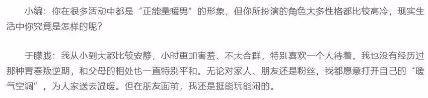 長大後,於朦朧屬於慢熱型,在熟悉的朋友他是個開心果,特別會調節氣氛,但在不熟之人面前他卻很少開口。