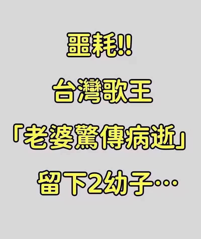 噩耗/台灣歌王「老婆驚傳病逝」留下2幼子