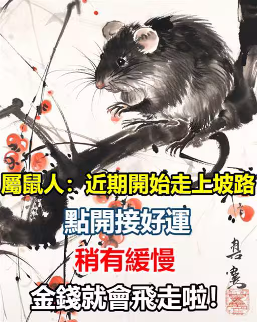 屬鼠人:近期開始走上坡路,點開接好運,稍有緩慢,金錢就會飛走啦