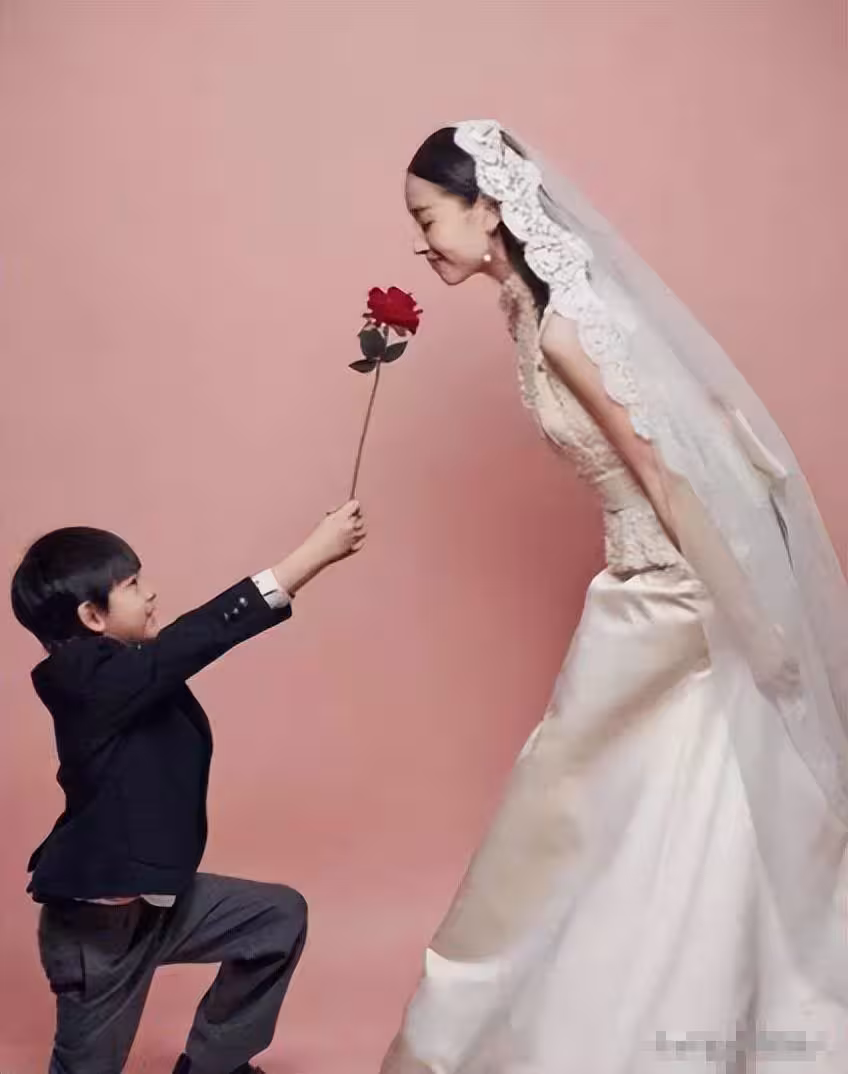 令人震驚的是,在頂峰年僅7歲之際,她便帶著其拍攝婚紗照。