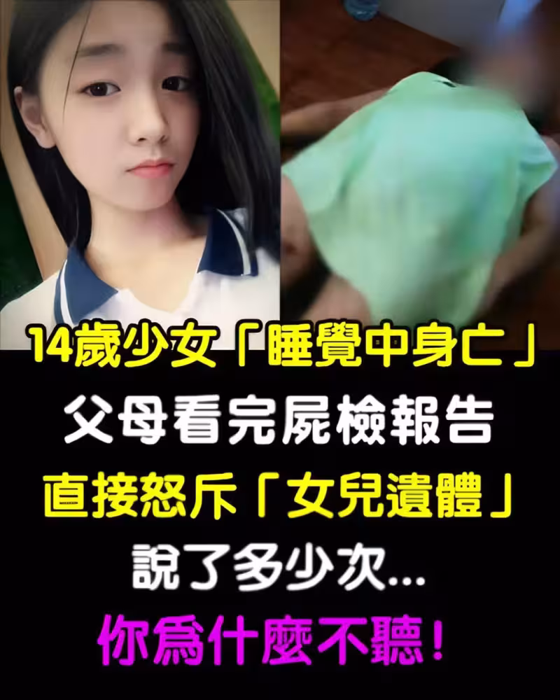 14歲少女「睡覺中身亡」!父母看完屍檢報告,直接怒斥「女兒屍體」 說了多少次,你為什麼不聽!