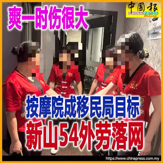 (新山18日訊)移民局在新山取締3間按摩院,共逮捕54名外籍人士。