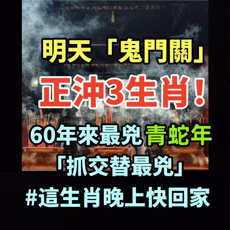明天「鬼門關」正沖3生肖!60年來最凶青蛇年 「抓交替最凶」#這生肖晚上快回家!