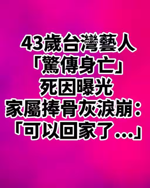 43歲台灣藝人「驚傳身亡…」死因曝光! 家屬捧骨灰淚崩:「可以回家了...」