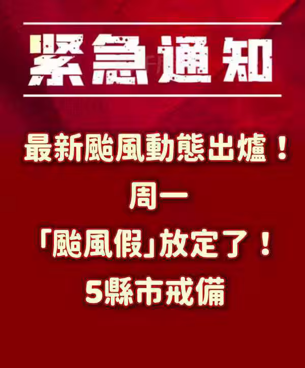 快訊/最新颱風動態出爐了! 周一「颱風假」放定了! 5縣市戒備!
