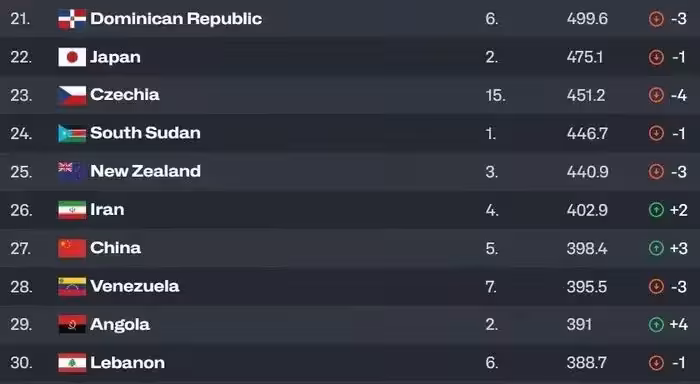 最後各大洲排名榜首的球隊分別是美國男籃、澳大利亞男籃、德國男籃和南蘇丹男籃。至於中國男籃的名次多少還是有些出乎意料,因為,在男籃亞洲杯之前,中國男籃世界排名第30 ,如今上升了3位,也算是肉眼可見的進步,可能很多人不解,中國男籃此前在男籃亞洲杯上獲得第二名,為何排名落後日本男籃、紐西蘭男籃和伊朗男籃?