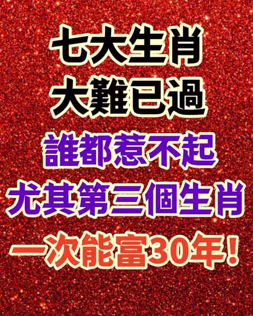 七大生肖大難已過(最惹不起)的生肖,尤其第三個生肖,一次能富30年。