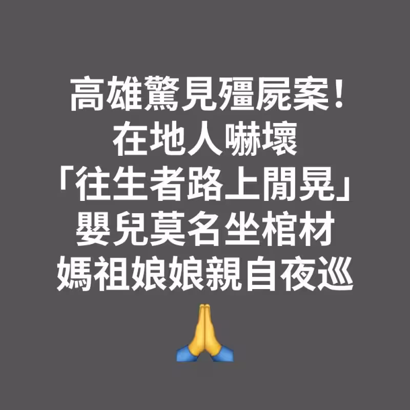 高雄殭屍奇案!在地人驚曝「往生者路上閒晃」嬰兒莫名坐棺材 媽祖娘娘「親自夜巡」如今仍有怪事