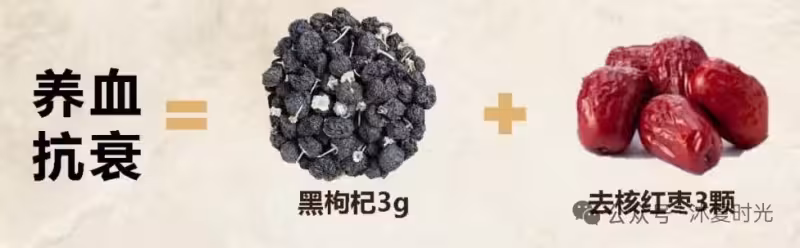 原理:紅棗補脾生血,黑枸杞補腎填精,脾腎雙補改善血虛。