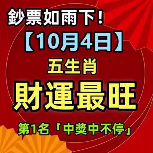 鈔票如雨下!【10月4日】五生肖財運最旺,第1名「 中獎中不停! 」