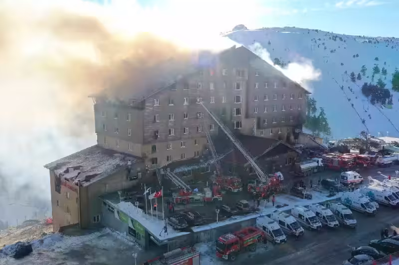 根據《ETtoday新聞雲》、《NOWnews今日新聞》報導,火災地點位於土耳其滑雪勝地卡達卡亞(Kartalkaya)的卡達大飯店(Grand Kartal Hotel),大火於凌晨3點30分左右從餐廳樓層開始蔓延。