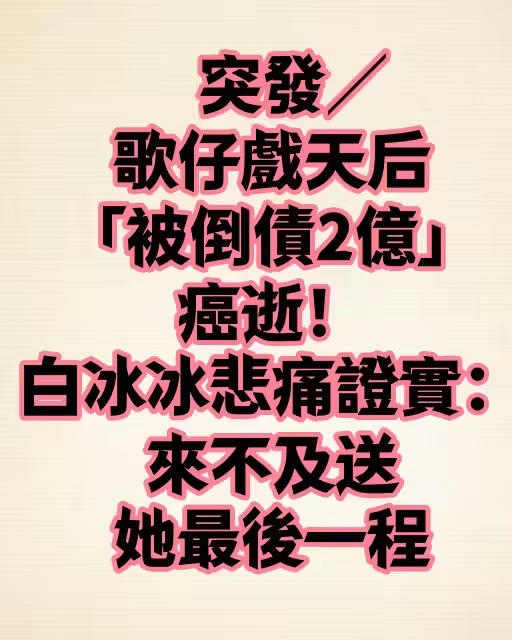 突發/歌仔戲天后,「被倒債2億」癌逝!白冰冰悲痛證實:來不及送她最後一程