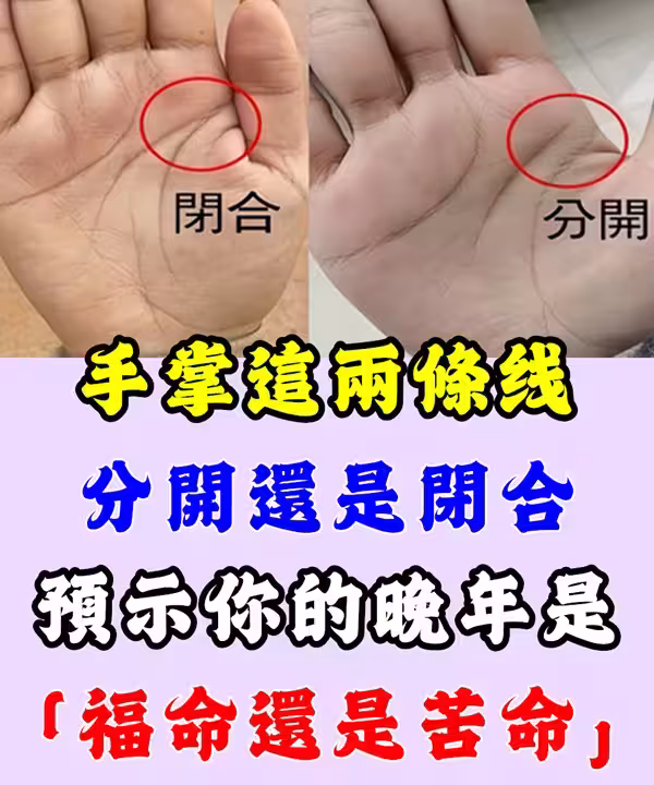 手掌這兩條線「分開」還是「閉合」 預示晚年「福命還是苦命」:太准了…