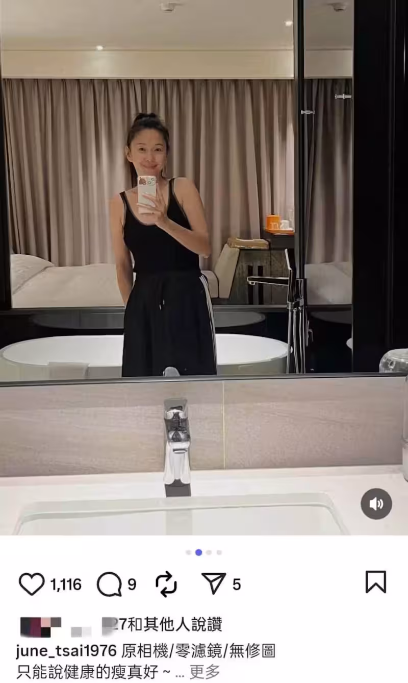 除此之外,六月的身形也比以往瘦了不少,不過狀態看起來不錯,就連她本人都驚嘆:「只能說健康的瘦真好」,照片曝至今吸引千名網友朝聖,網友也稱讚六月的臉很小,嘴甜表示她是女神。