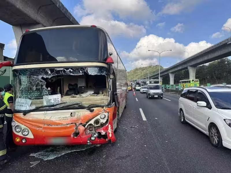 今天(10/8)清晨,國道1號北向五股路段,一輛載運鋼筋的聯結車,疑似沒跟前車保持安全距離,緊急煞停閃避,結果後方客運反應不及撞上,造成28人受傷送醫,當時正值上班尖峰時段,車流一度回堵!